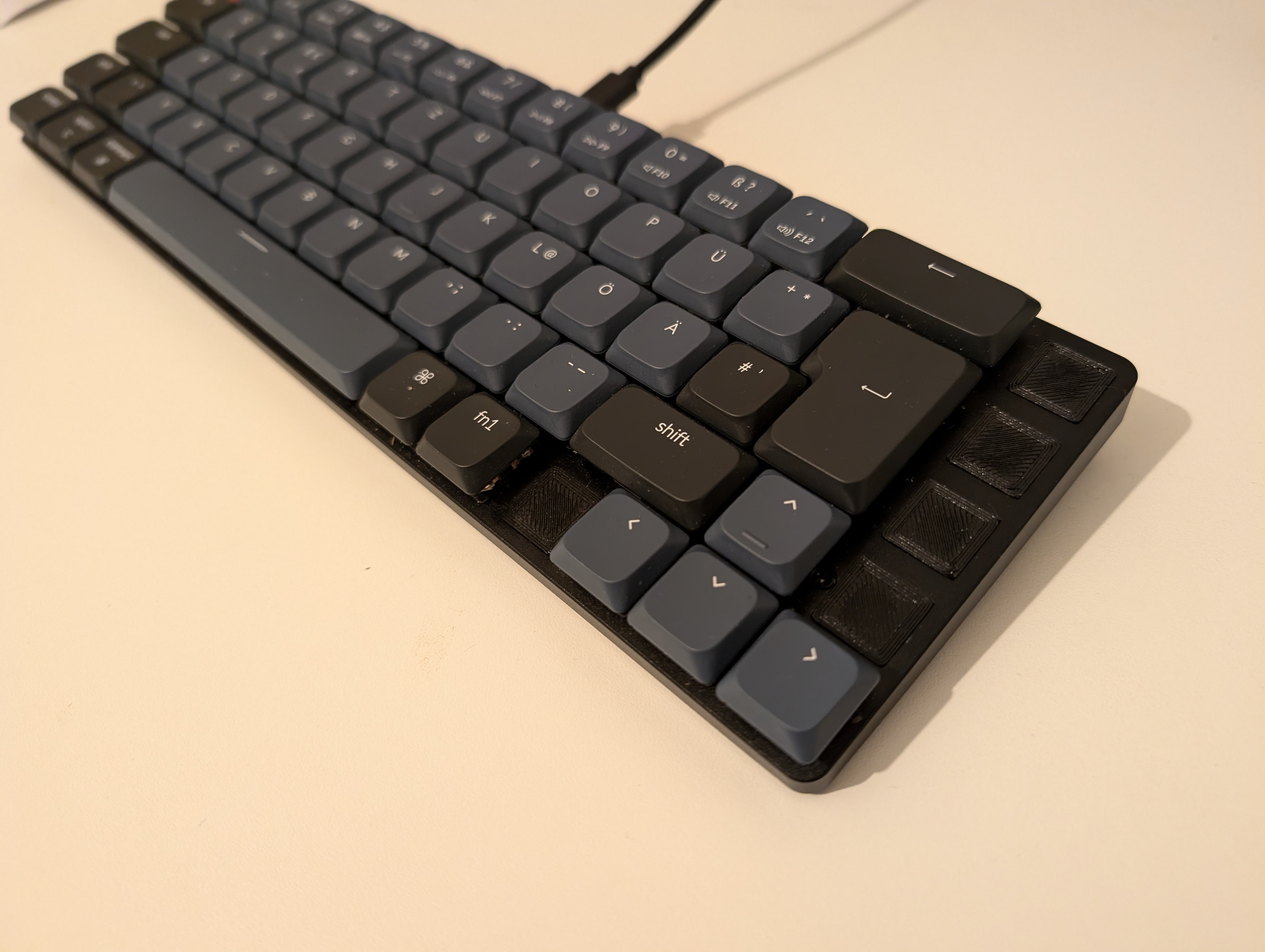 To not expose the keyboard PCB, I 3D-printed some caps to "close" the holes, which worked quite nicely. You can download the STL-file here.