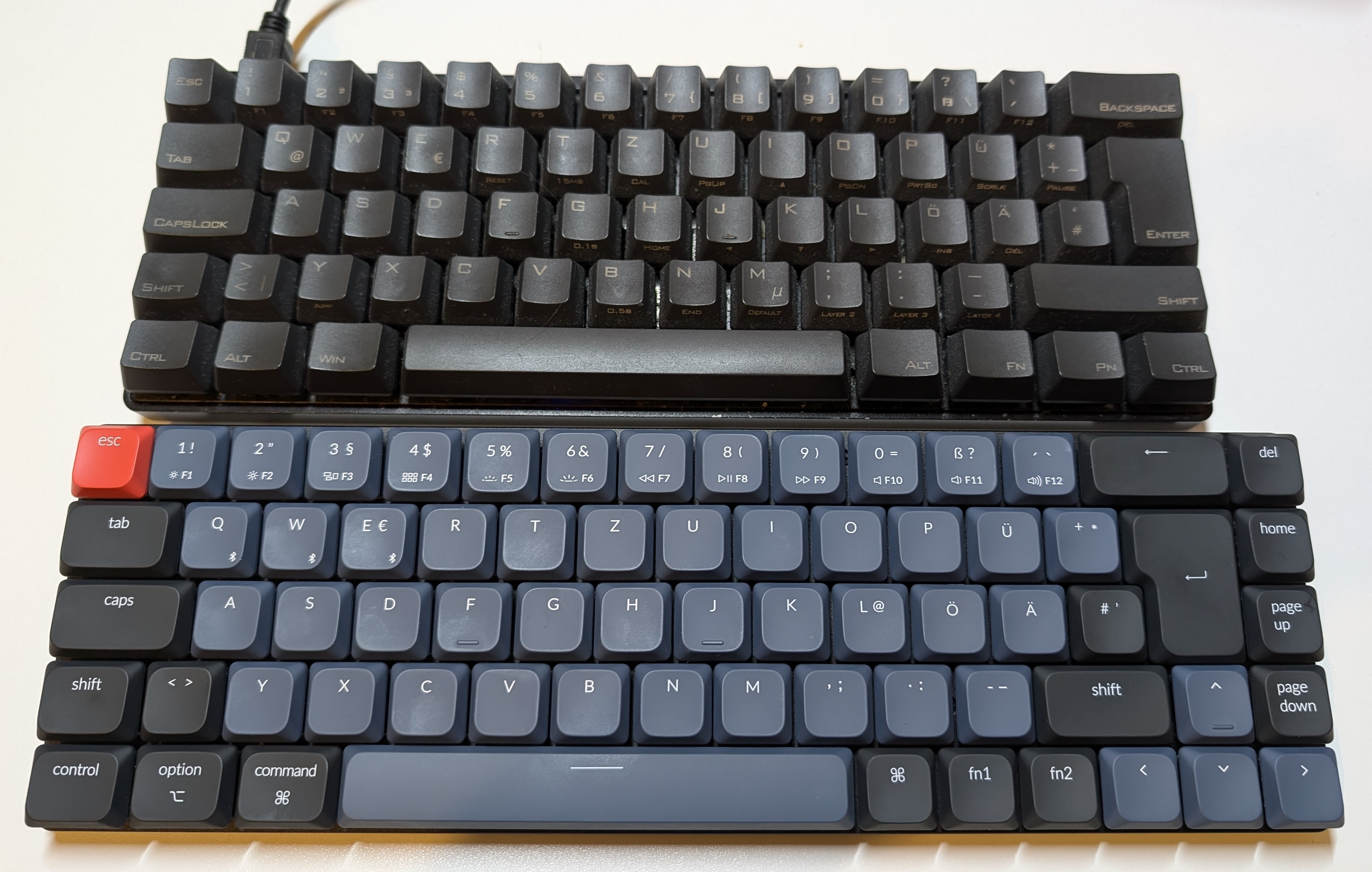 The main reason for the change was that I still used the classic arrow keys quite a lot and on the on the Pok3r you need to activate them with a shortcut, to change to right shift, ctrl, Fn and Pn keys to work as arrow keys. And aside from that the Pok3r keyboard had a mysterious behavior that would wake up my Mac at random times during sleep mode.